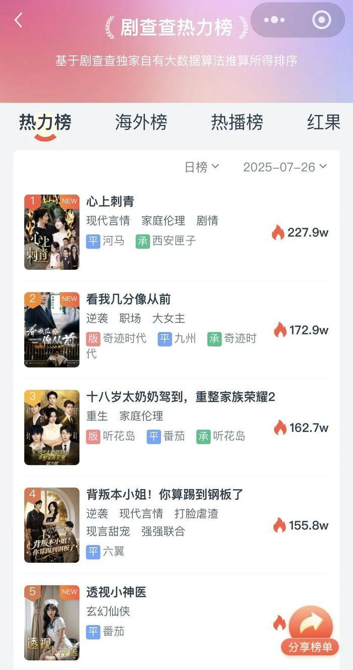 不过,如今的短剧仅凭制作精良已经很难突出重围;除了拼制作,还要拼剧情,甚至开始和长剧比拼IP。