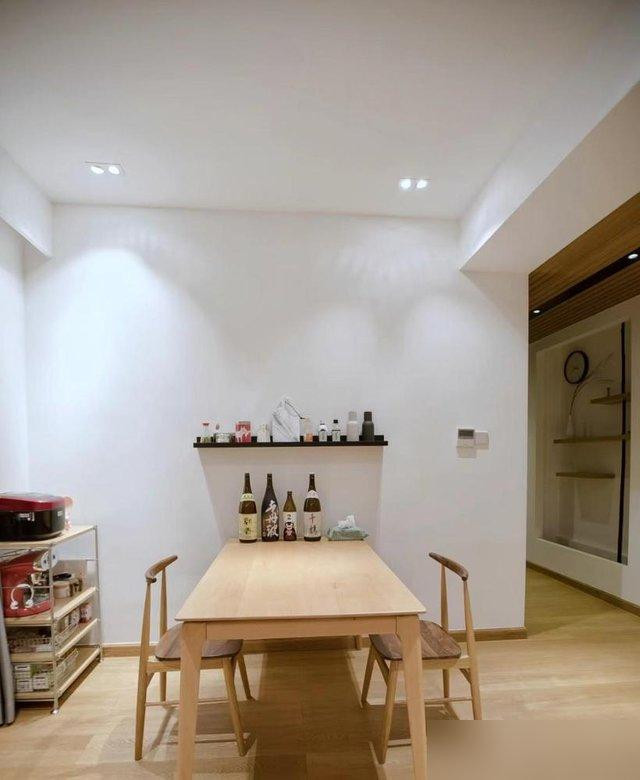 装修那点小心思也懂生活:全屋大白墙配双眼皮吊顶,不像那些花里胡哨的背景墙,看两年就腻;家具都是高脚的,扫地机器人钻进去不用搬椅子;厨房升降插座藏在吊柜里,电饭煲、破壁机随用随插,台面空得能当镜子擦——你说这得省多少事?