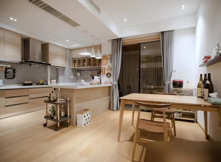 客餐厅更妙,不砌墙不装屏风,用地砖纹理划地盘——孩子跑着追玩具不会撞墙,朋友来聚会,做饭的在厨房能听见客厅聊天,递个水果不用绕到阳台再绕回来,这空间跟小溪似的流着,哪像有些网红装修,客厅大得能打羽毛球,可从沙发到厨房得走五分钟,端杯茶都得歇口气。